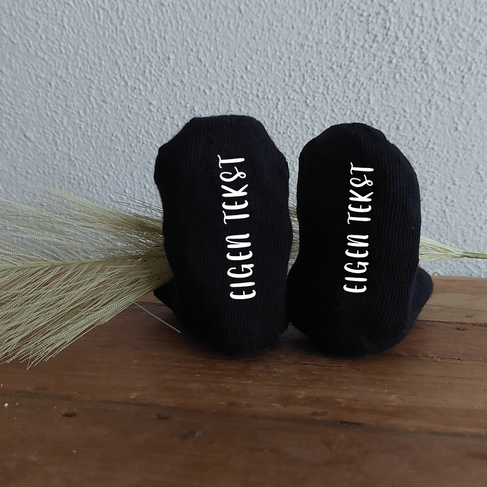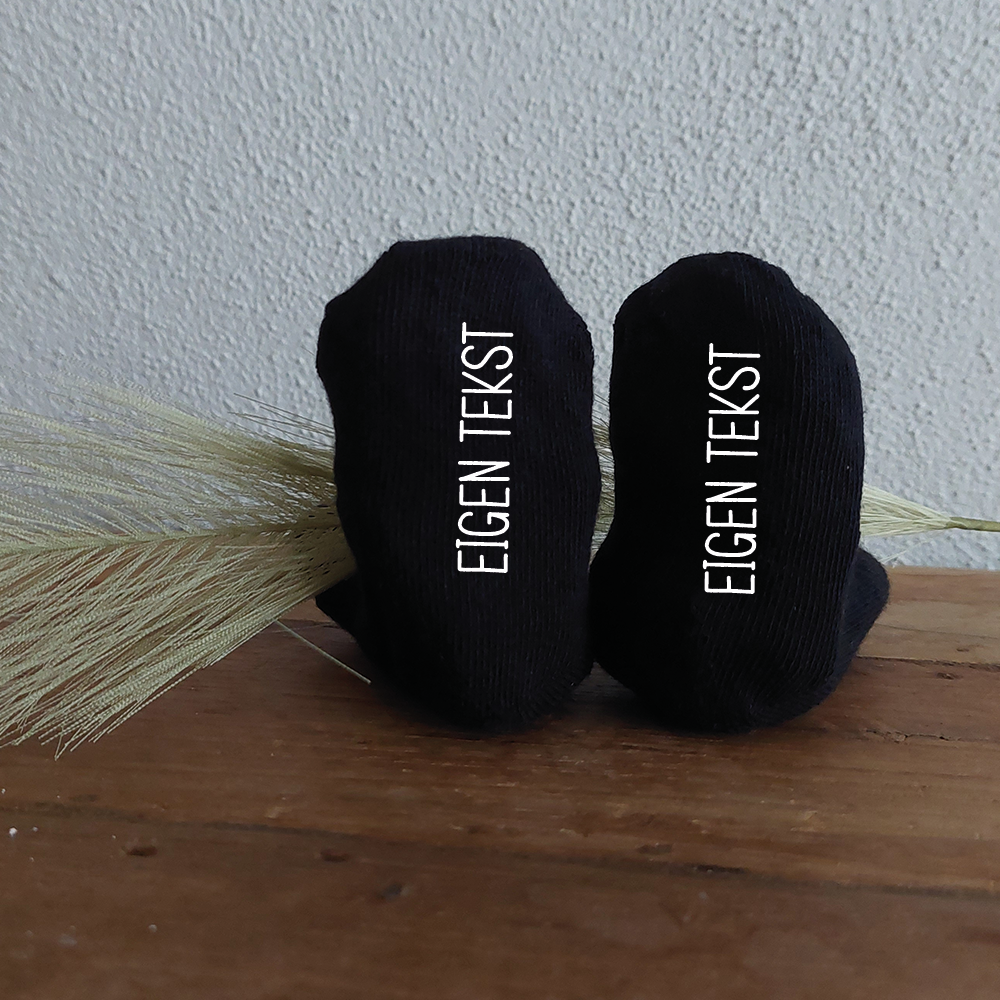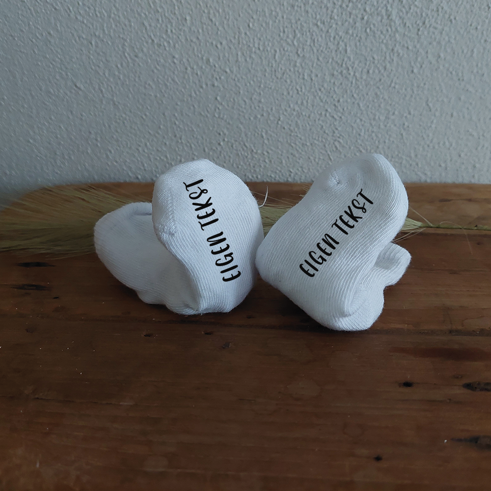 Onze lieve baby sokjes met tekst zijn lief, stoer en zacht. De babysokjes zijn verkrijgbaar in de maatjes 0 tot 6 maanden en 6 tot 12 maanden in verschillende kleurtjes. De sokjes worden bedrukt aan de onderzijde van de voet. Wil je liever de babysokjes laten bedrukken aan de onderzijde of de bovenzijde? Klik dan hier! Wil je de sokjes graag gebruiken als zwangerschapsaankondiging dan kan je er ook voor kiezen om beide sokjes van een andere tekst te voorzien. Dit doe je heel gemakkelijk door de juiste informatie in te vullen bij je eigen tekst en wil je graag een extra tekst erbij dan kan je dit gewoon bij de opmerkingen in vullen.