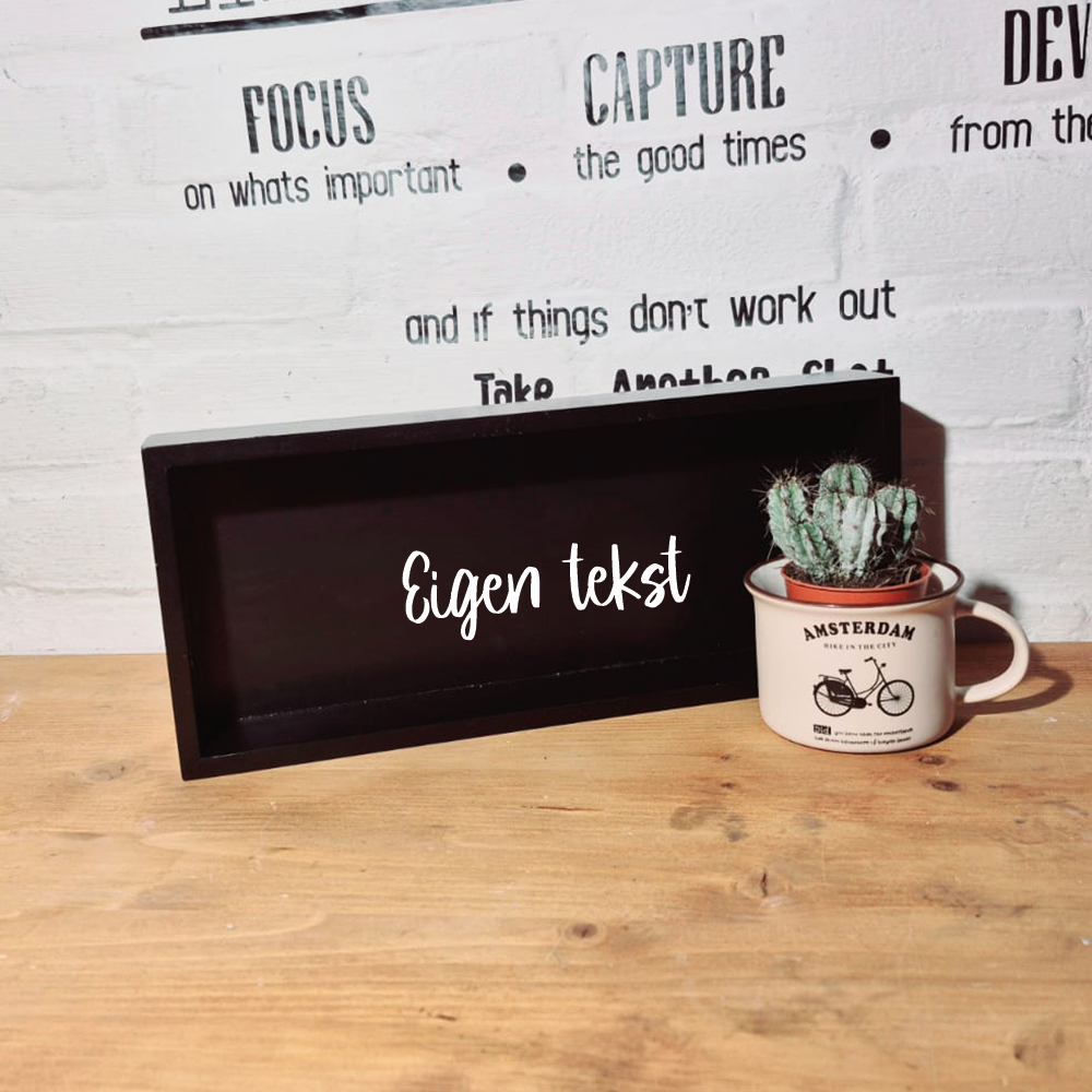 Dienblad met eigen tekst bedrukken cadeau | Deze geweldige dienbladen zijn bedrukt met …..helemaal niets. Want we hebben hem leeggelaten zodat jij zelf de tekst kan verzinnen, Je kan in de notities gewoon bijvoegen hoe je het wilt. Dus in 1 regel, 2 regels of 3 regels. Heb je een voorbeeldje van hoe je het zou willen? Stuur hem gerust door dan maken wij hem na voor dezelfde prijs.