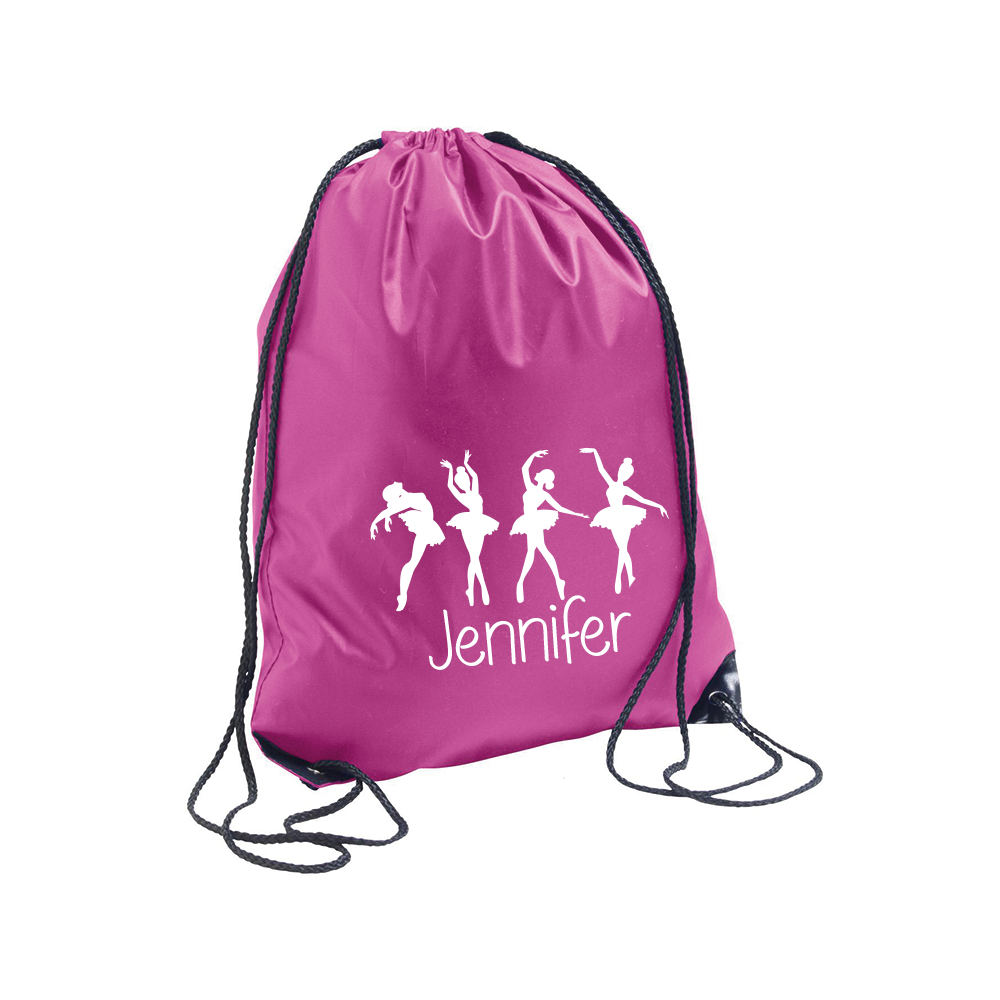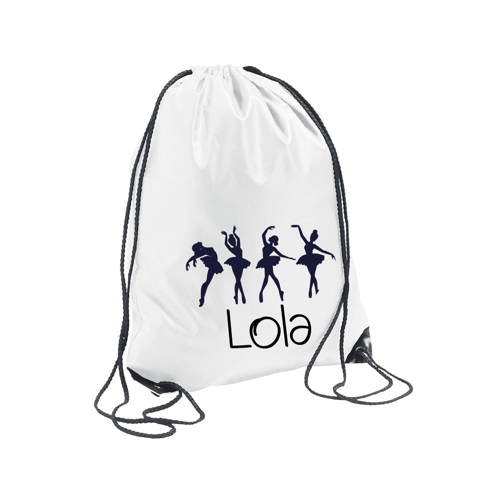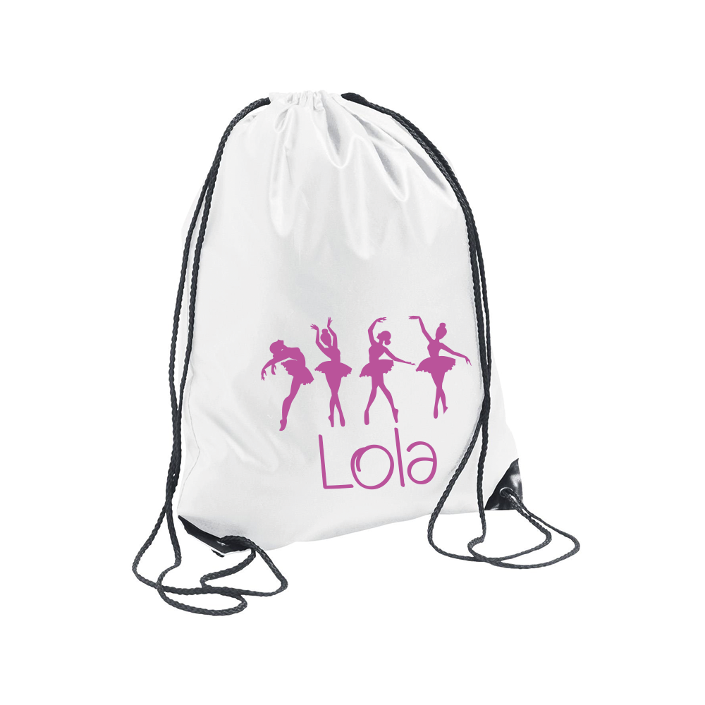 Tas ballerina met naam is super hip en onwijs handig. Onze tassen zijn gemaakt van 100% polyester en de onderste hoeken zijn versterkt met ringoogjes waardoor de tas niet uitscheurt. Ook heeft de tas verstelbare rijgkoorden, das wel zo makkelijk bij de kleintjes.
