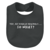 Slabbetje bedrukken tekst ‘So what?’