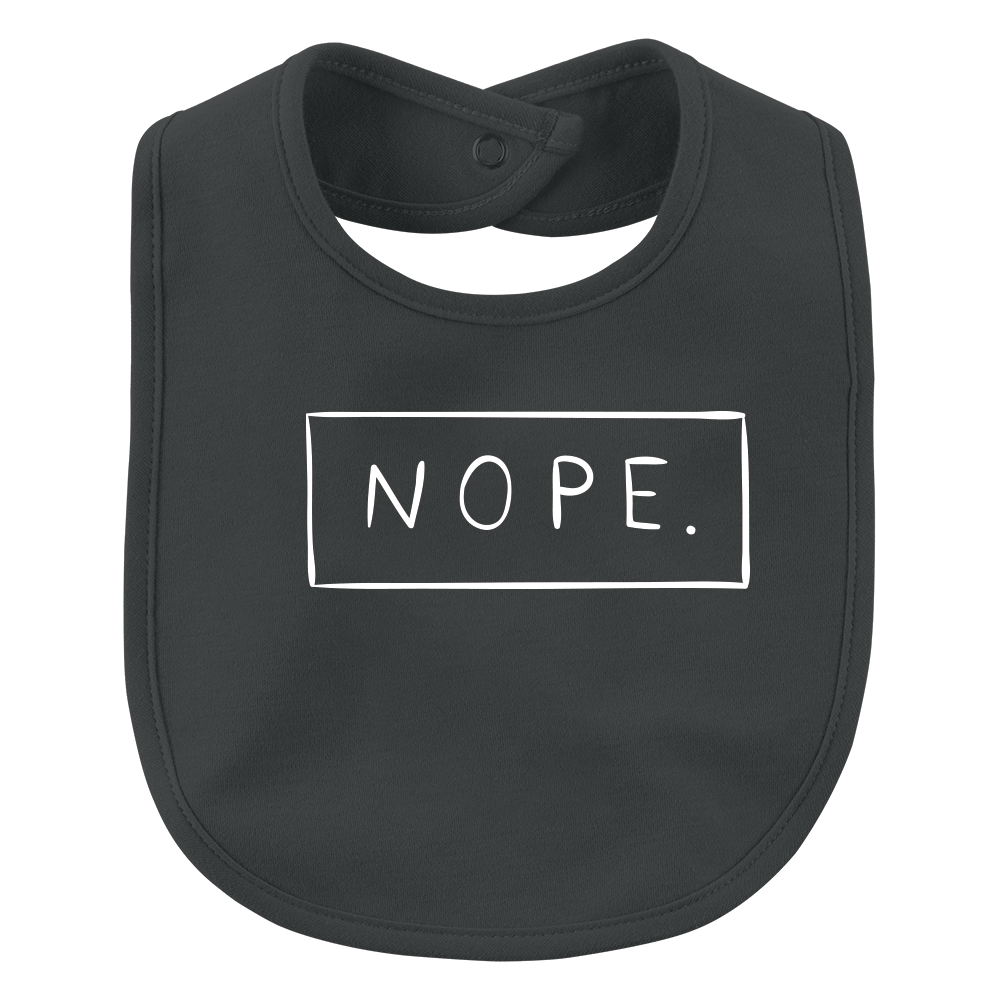Dit geweldige slabbetje met de tekst ‘Nope’ is een echte aanrader! De bedrukte slabbetjes hebben een standaard maatje (25cm x 20 cm) en zijn verkrijgbaar in de zwarte en witte kleur. Ze worden bedrukt met zwart en witte kleurtjes.